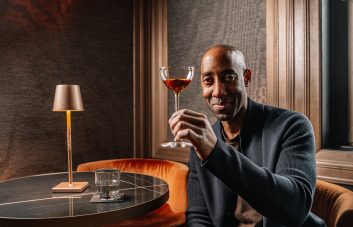 Dus we zijn begonnen met de blauwdruk van een Manhattan die we hebben uitgerekt met Cocchi Americano en met een gedeelde basis van Old Tom Genever. Er zit wat umeshu [pruimenwijn] verstopt voor een aangename verrassing.